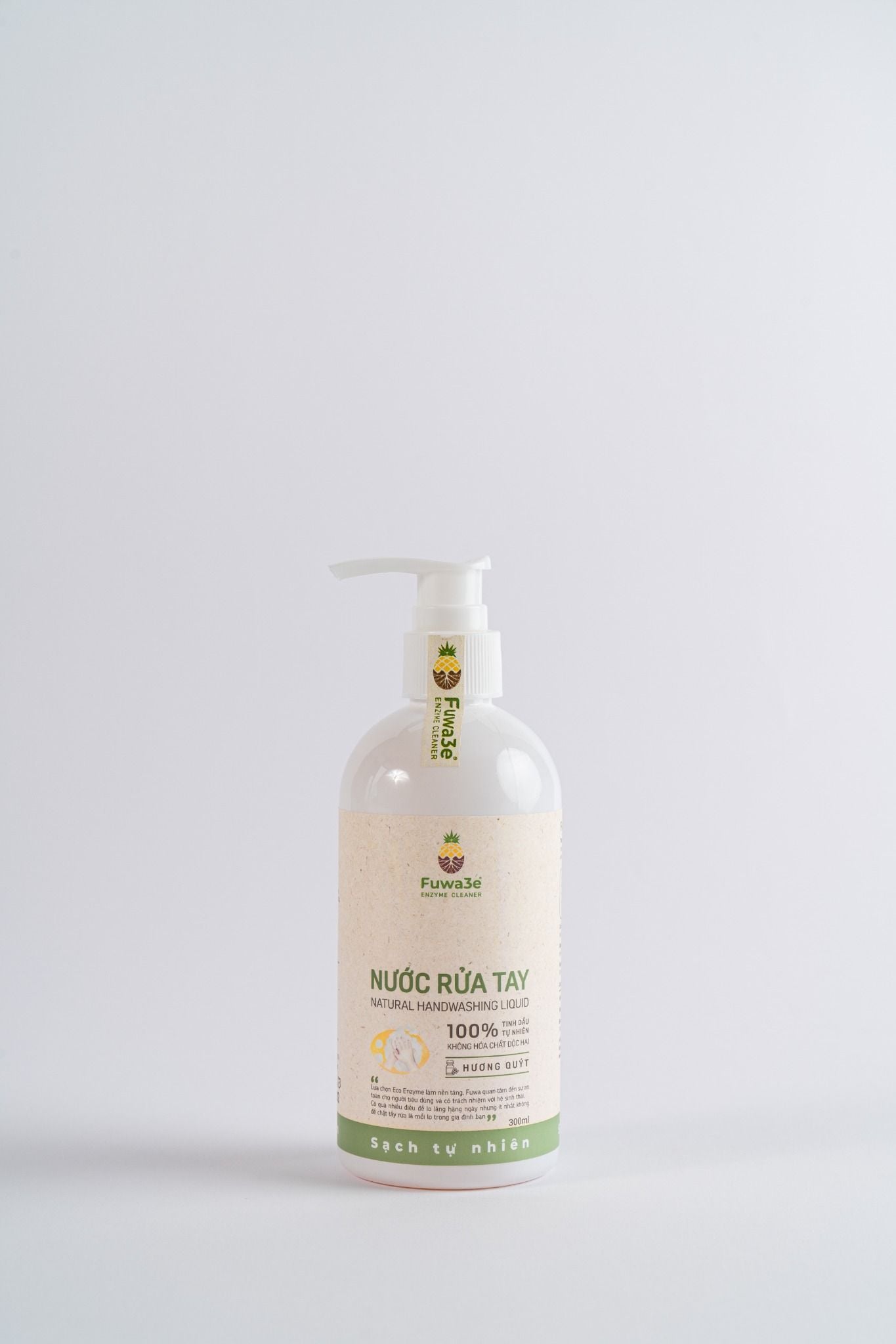 Nước Rửa Tay Fuwa3e - Mùi Quýt được làm từ tinh dầu tự nhiên, không chứa hóa chất độc hại.Thành phần: Enzyme sinh học lên men từ trái thơm, bồ hòn, Cocamidopropyl...